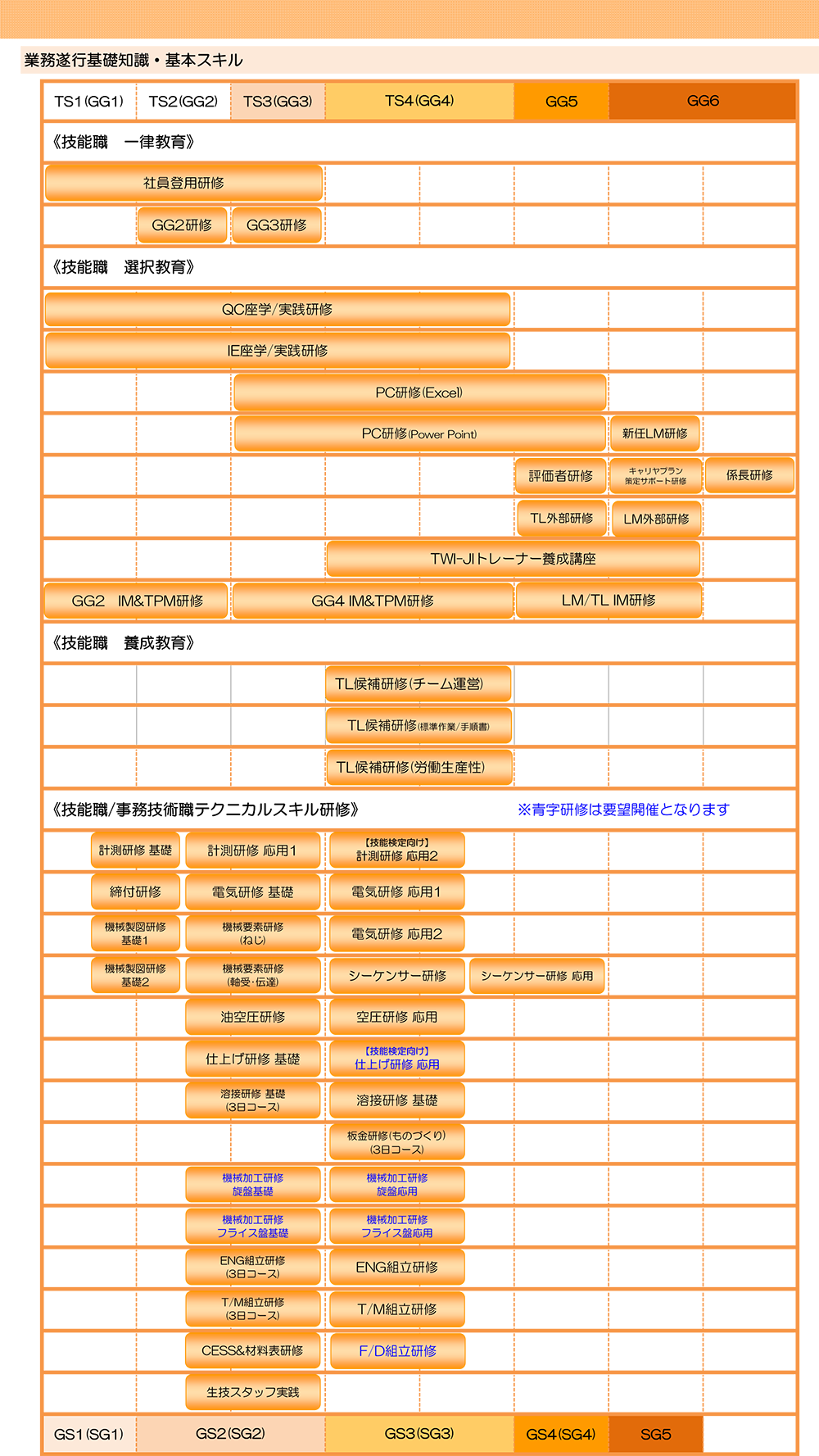 - ※技能職の階層別教育:新入社員・若手・中堅・管理監督者など