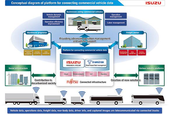 The platform for connecting commercial vehicle data allows for integration of data remotely collected by Isuzu and TTI from their customers in regards to conditions and locations of about 500,000 commercial vehicles. With this new platform in place, three companies aim to generate synergy effects by combining Isuzu's expertise in effective use of vehicle data through its PREISM, advanced genuine maintenance program and MIMAMORI, a telematics for commercial vehicles, TTI's proven cloud-based operation support system and Fujitsu's latest DX technologies (cloud service, connected service). Through this, the companies will address various challenges the transportation industry is facing today and strive to offer new services within 2022.