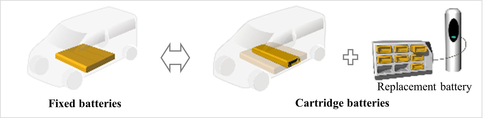 - 1Able to reduce the cost of BEV introduction: The cost can be reduced by limiting battery capacity—and, thus, the total amount of batteries—to match actual driving-range needs.