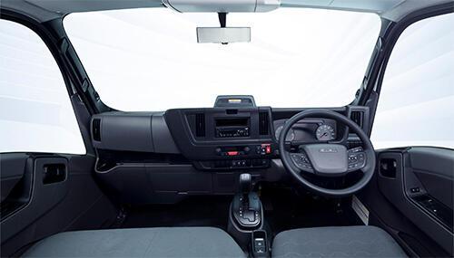 For driver comfort and fatigue mitigation, the standard cabin has greatly expanded space over the driver’s head, front and sides. Consequently, it allows for the most spacious cabin*1 in the segment of light-duty delivery cab-over trucks. In addition, the larger door opening and adoption of a semi-grip-type door handle that can be accessed from both the upper and lower sides improve the ease of access and usability.