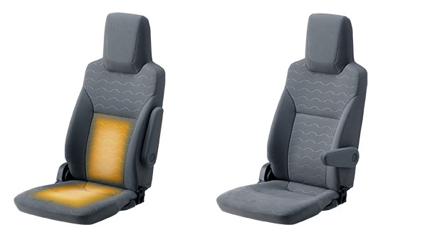 Armrests and seat heaters are integrated to help improve the working environment for drivers so that they can drive comfortably even when the vehicles are used in various ways, such as for long-haul highways or during winter seasons.