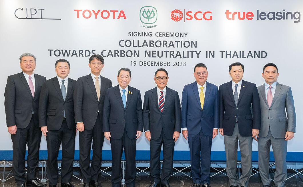 Charoen Pokphand Group (CP), True Leasing (TLS), Siam Cement Group (SCG), Toyota Motor Corporation (Toyota), and Commercial Japan Partnership Technologies Corporation (CJPT) have signed a Memorandum of Understanding (MOU) to further accelerate collaboration towards achieving carbon neutrality in Thailand. This MOU is based on achievements to date in our joint efforts, including logistics efficiency at CP and SCG sites and the introduction of carbon-neutral mobility based on usage in Thailand.