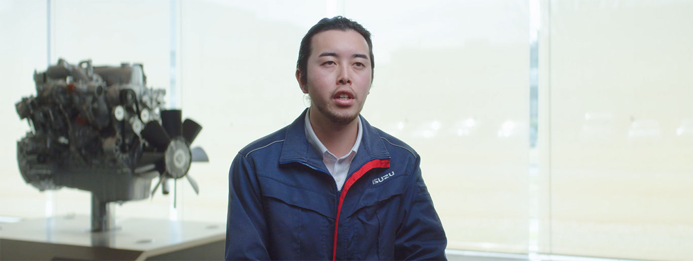 トラックは乗用車と違って仕事で使うのがメインということで、高い実用性が問われます。私は就活中に自動車メーカーを見ていく中で、いすゞはそのようなニーズに対して実直に向き合っているところから、企業として安定感を強く感じたため志望しました。