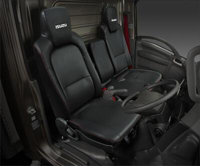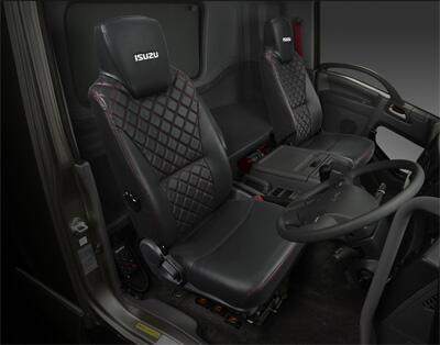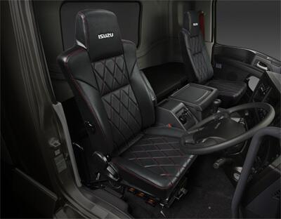 ISUZUロゴの刺繍をあしらった本革調の限定シートと赤色のシートベルトを採用。ドアハンドルとパワーウインドウスイッチはクロム調に統一※し、上質な空間を演出しています。また、AM/FMラジオ&CD(AUX/USB端子・時計付)を標準装備します。
