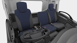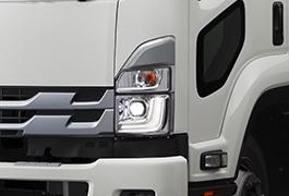 今回の改良では、国内中型トラック初※1となる右左折時における横断歩行者を検知する交差点警報と、歩行者まで検知対象を拡大したプリクラッシュブレーキの採用により、安全運転をサポートします。また、LEDヘッドランプおよびフォグランプを標準化し、夜間走行時の視認性を向上しました。いすゞは、ドライバーの視界を補助する次世代の安全装備を拡充※2し、事故抑制に貢献します。 さらに、ハイルーフやBluetooth®※3オーディオを新規設定し、快適な運転環境と利便性を向上させました。