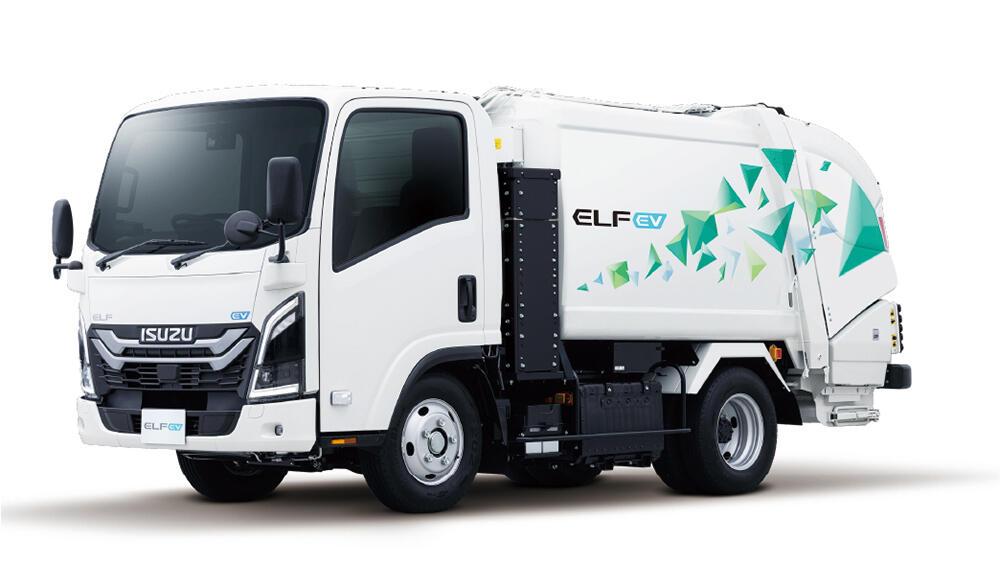 CN社会の実現のためにいすゞが展開する小型トラック「エルフEV」の塵芥車です。架装物への動力供給源としていすゞ独自開発の電動PTO※2ユニットを採用しています。