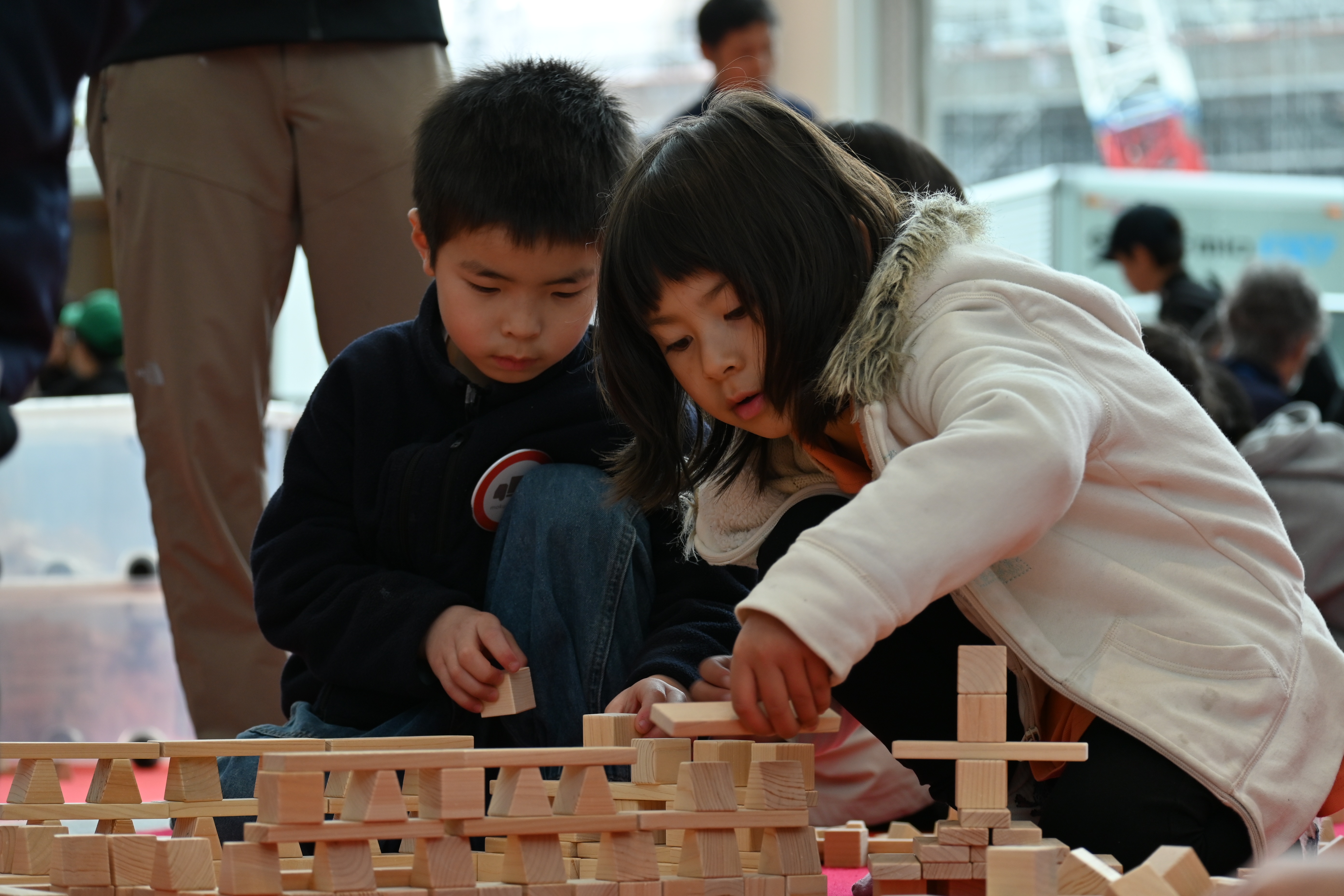 本イベントは、横浜市内の放課後キッズクラブおよび放課後児童クラブを利用する子どもたちを対象に、「木育」を通じて森林資源の循環やものづくりの楽しさを学ぶ機会を提供するものです。会場では、木工体験や木育トラック、EVトラック展示などを通じて、木の魅力や環境に配慮した「運ぶ」の役割を体感できるプログラムを実施し、児童や職員、保護者など約800人が参加しました。また、木製玩具「はたらくくるまバランスタワー」の贈呈式も行いました。