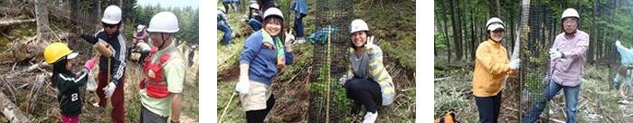 今回は数年前に植樹したものの、鹿害や風雪で枯死した箇所を補うため、新たに植樹と鹿よけ(ネット付け作業)を行いました。