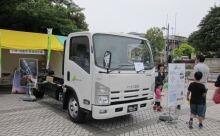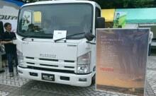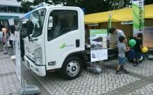 地域の方々に、企業としての地球温暖化対策(CO2 削減)への取り組みをお伝えするために、いすゞは、圧縮天然ガスを燃料とする「エルフCNG車」を出展しました。