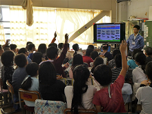 「どうしてこのプロジェクトが始まったのか、未来の世界に対してどんな心配をしたのか、ミドリムシの詳しい説明やすごいところ」を中心に授業が行われ、子供たちは疑問には手を挙げ、メモを取り、とても熱心に耳を傾けてくれました。
