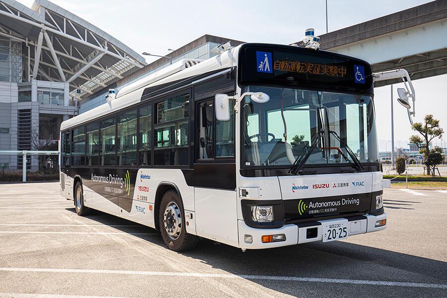 公共交通におけるドライバー不足の解決策の一つとして期待される、自動運転の実現に向け、大型バスでの自動運転の共同実証実験を行っています。限定された走行区域を走行するレベル2(部分運転自動化)自動運転の実証実験から開始し、その後、段階的に自動運転技術を高め、将来的にはレベル4(高度運転自動化)の自動運転走行の実現を目標としています。