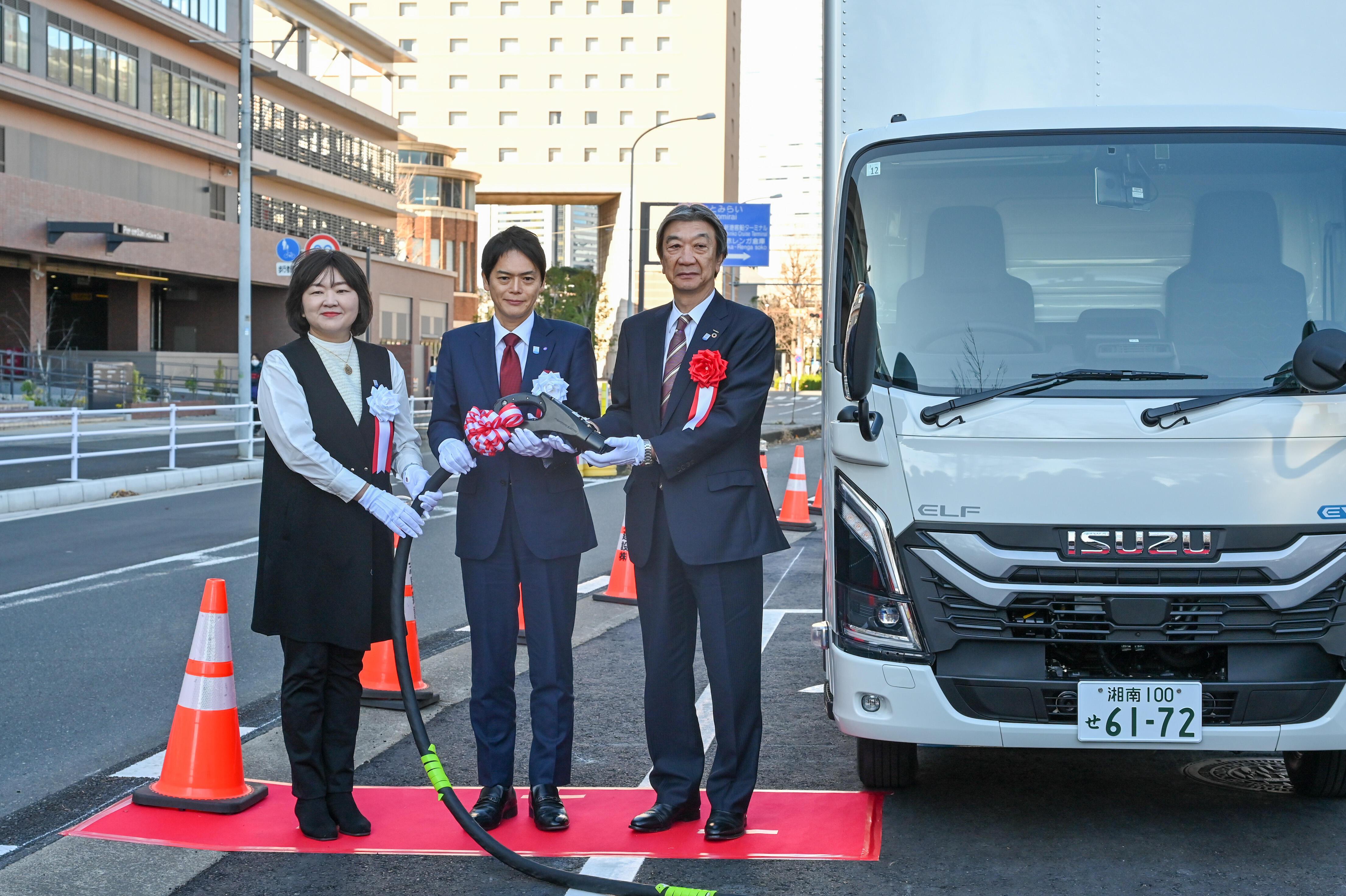 いすゞ自動車株式会社(本社:神奈川県横浜市、社長COO:南真介、以下「いすゞ」)は、カーボンニュートラル(CN)な社会の実現を目指す横浜市とともに、商用バッテリーEV(BEV)の普及や脱炭素に資する輸送の効率化に向けて、BEVトラック対応として全国で初めて設置された公道充電ステーションの実証実験に参画します。